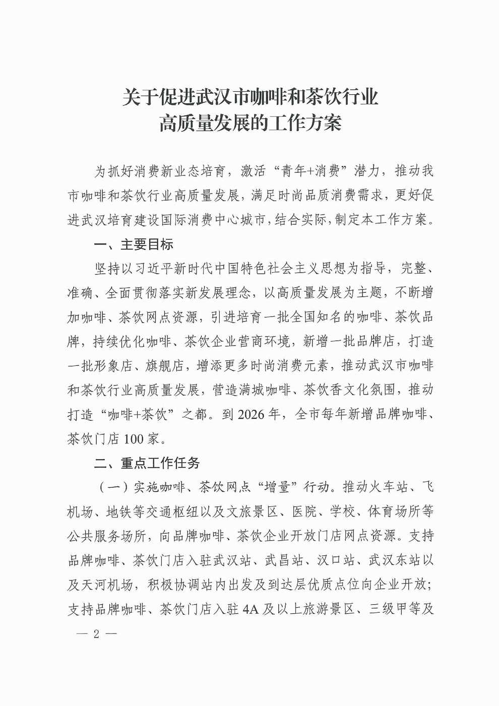 | 标 题 | 市商务局关于印发武汉市咖啡和茶饮行业高质量发展工作方案的通知 | ||
