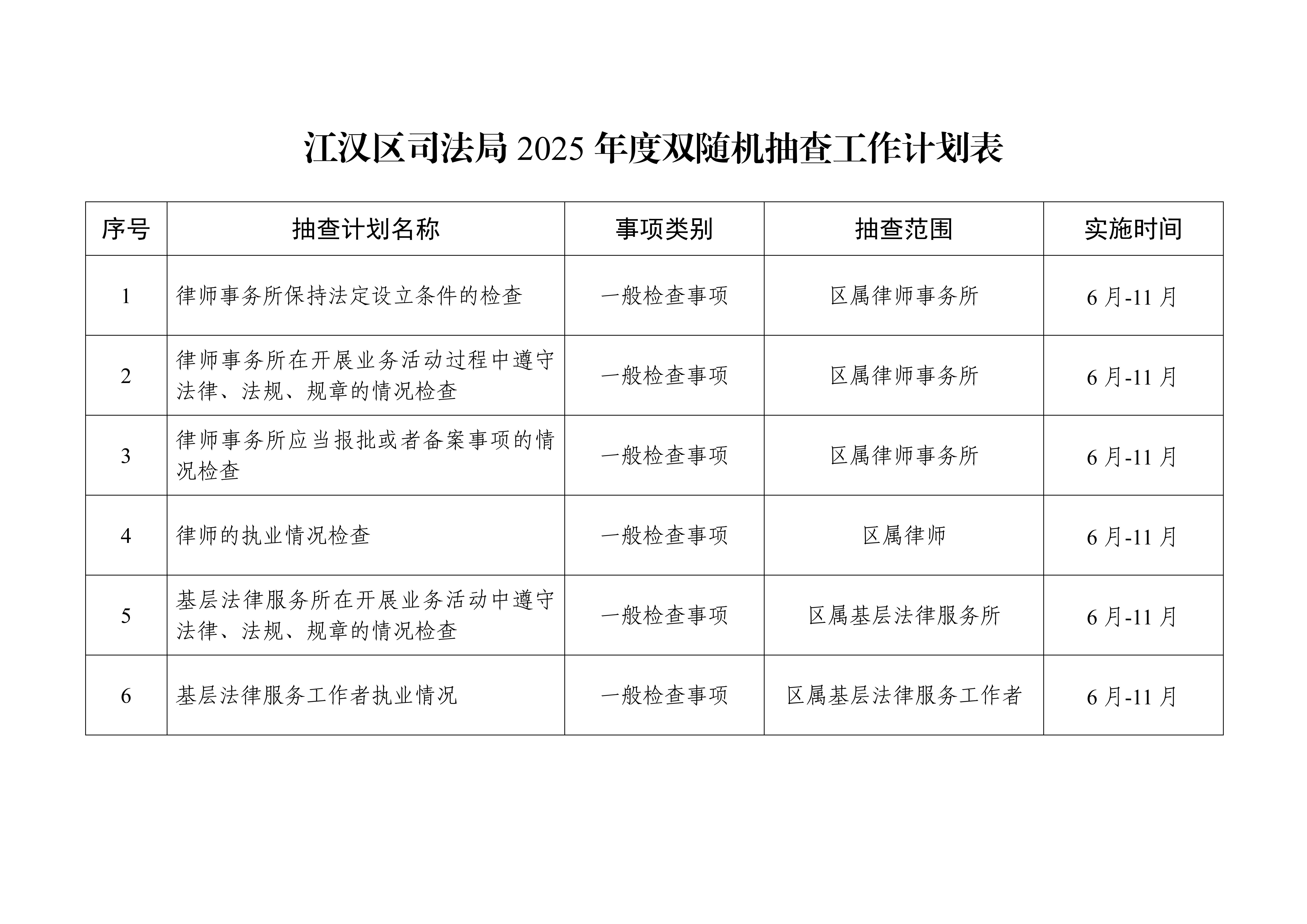| 标 题 | 酒店偷拍 司法局2025年度双随机抽查工作计划表 | ||