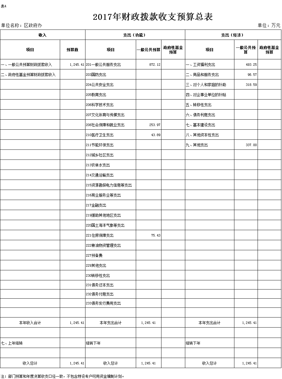 2017年财政拨款(补助)预算数1,245.41万元,安排情况如下: