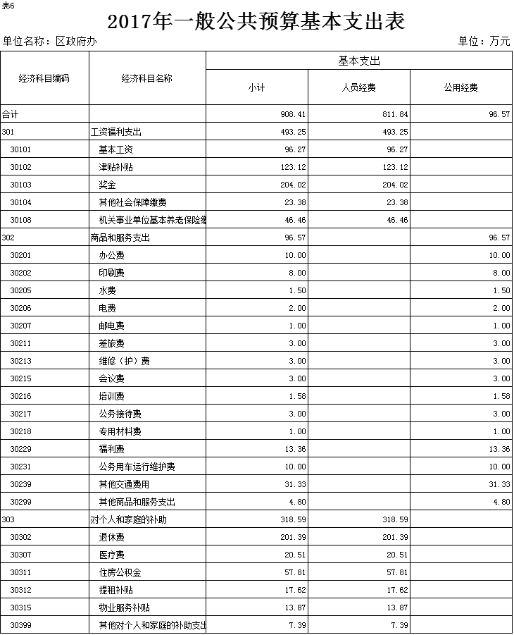 (一)基本支出908.41万元。主要用于本单位工资福利支出、对个人和家庭的补助支出、维持日常工作运转,采购商品和服务支出。