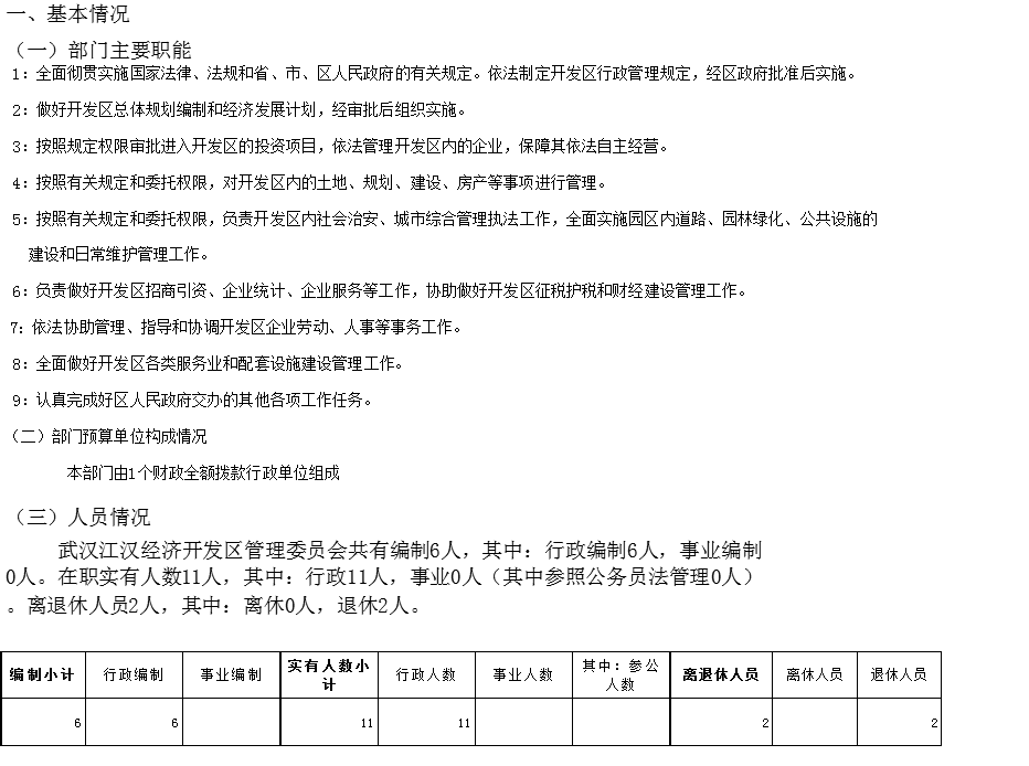 2015年度武汉江汉经济开发区管理委员会部门决算