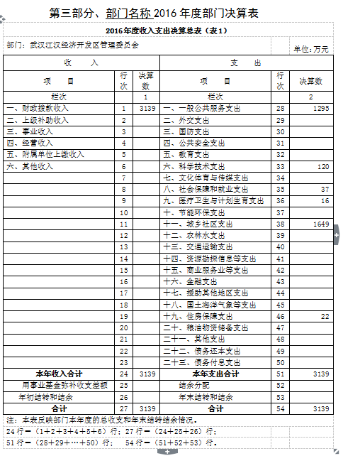 第三部分 武汉江汉经济开发区管理委员会2016年度部门决算表