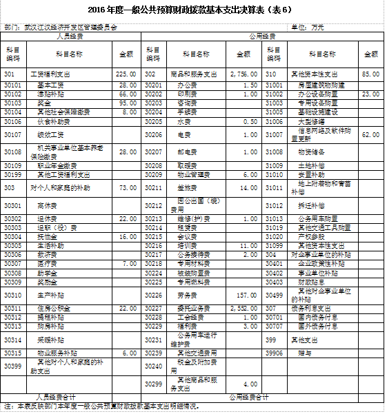 第二部分、武汉江汉经济开发区管理委员会2016年度部门决算情况说明