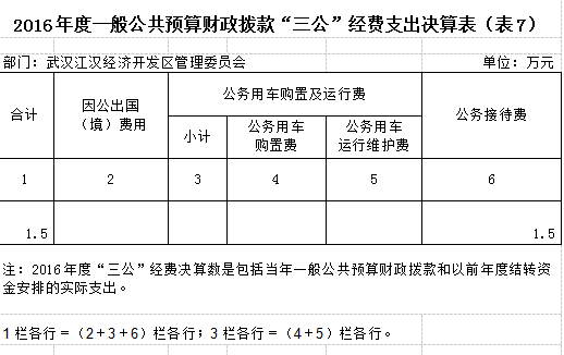 七、一般公共预算财政拨款"三公"经费支出决算表(表7)