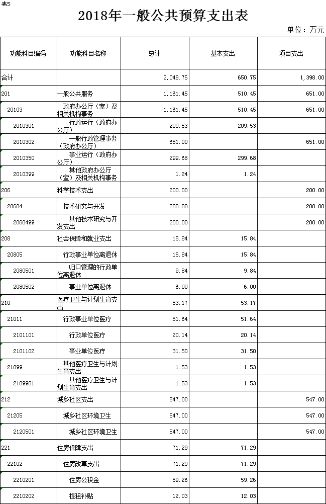 2018年一般公共预算财政拨款(补助)预算数 2048.75 万元,安排情况如下: