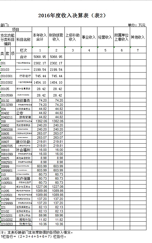 二、收入决算表(表2)