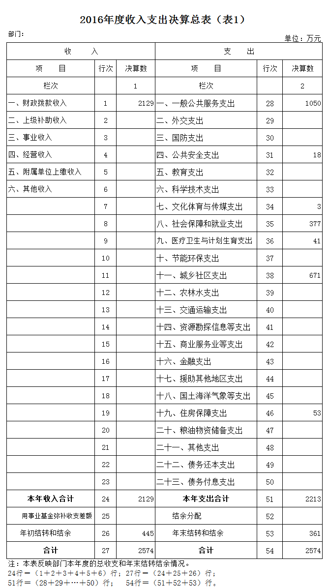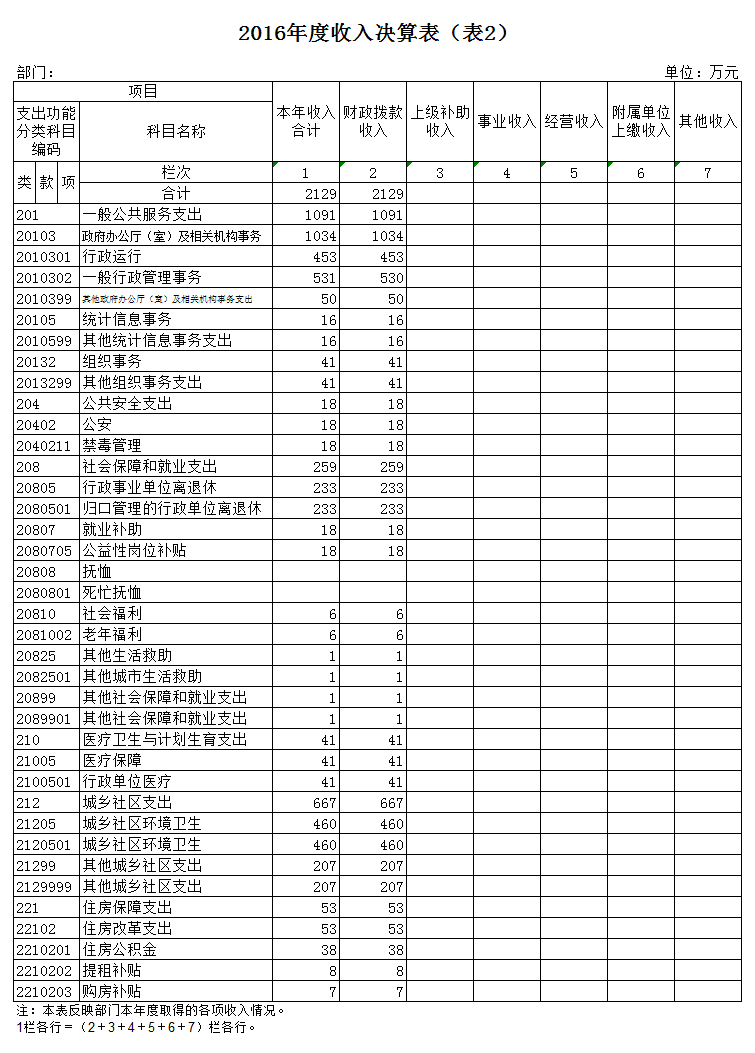 2016年度收入总计 2129万元,支出总计2213万元。与2015年相比,收入减少17万元,降低1%,主要原因是减去了弥补街道工作经费。支出增加223万元,增长11%,主要原因是不可预见经费增加。