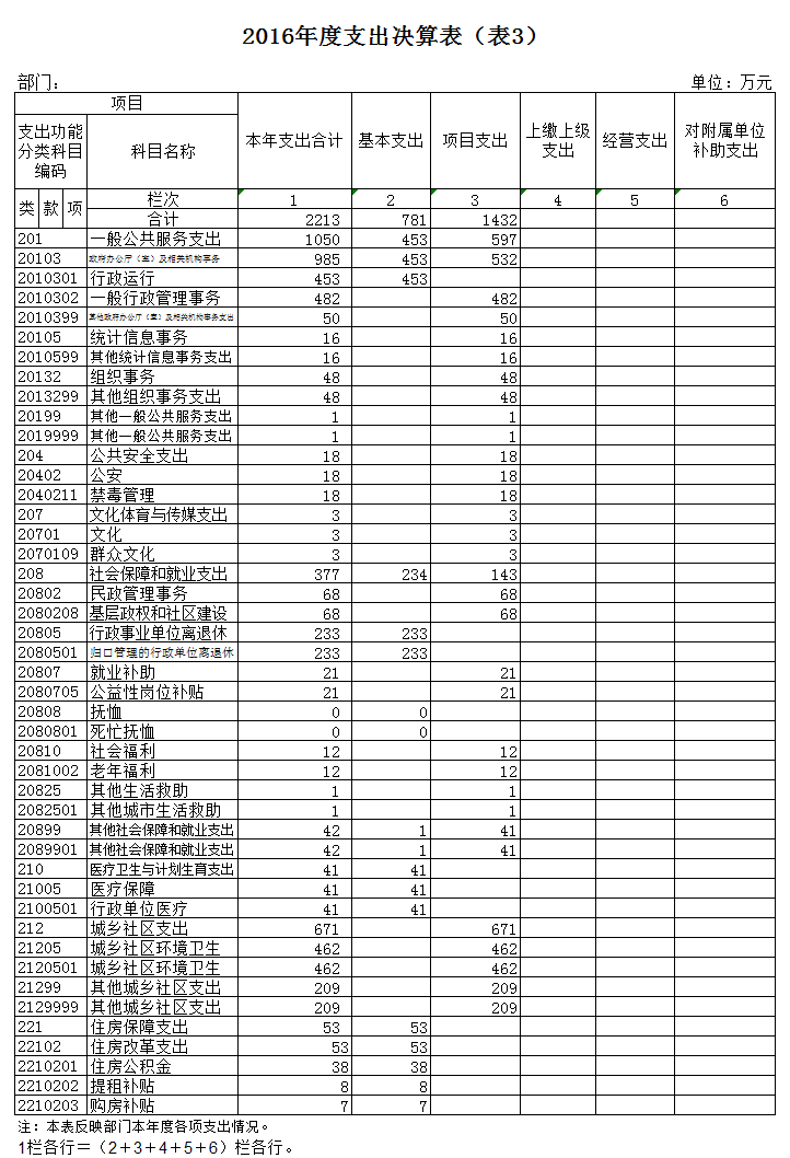 2016年度本年支出合计2213万元。其中:基本支出 781万元,占本年支出 35%,项目支出 1432万元,占本年支出 65 %。