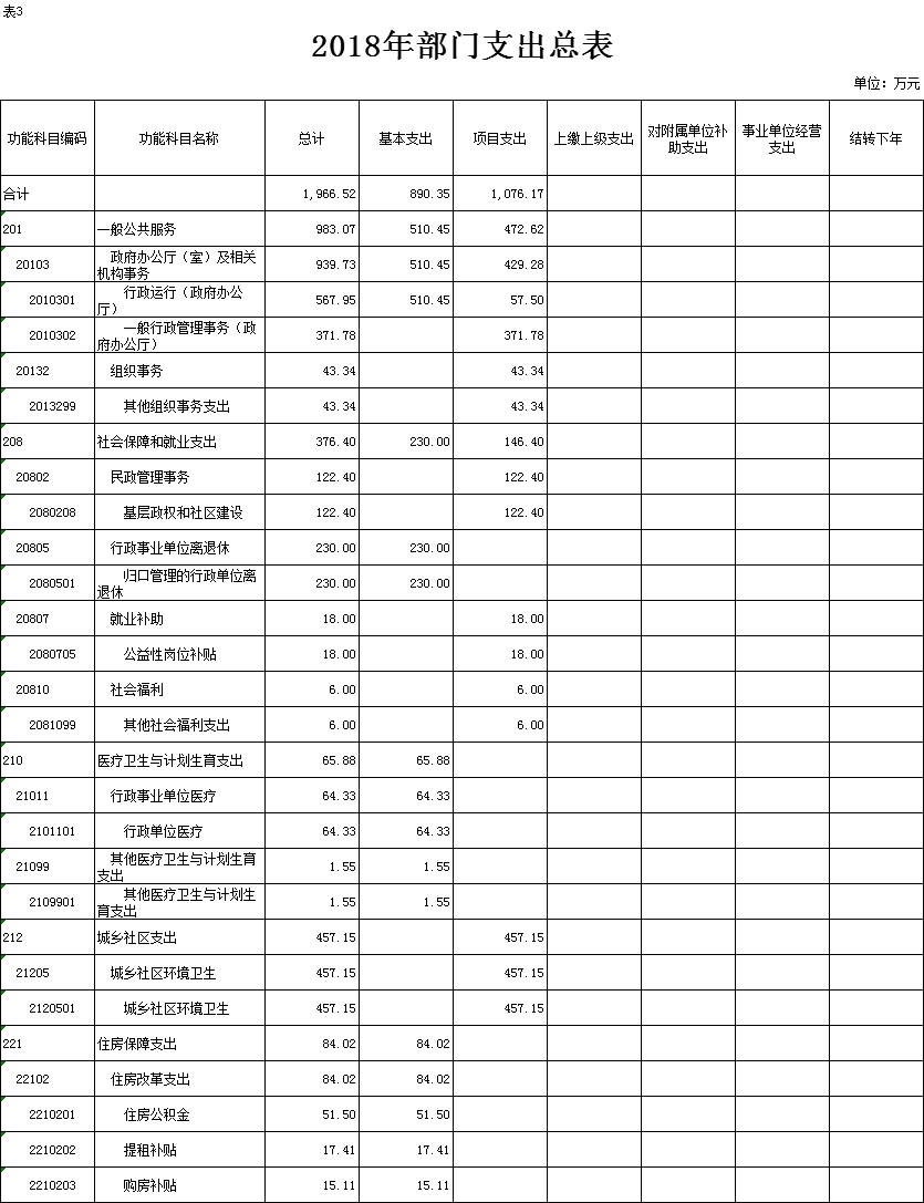 表3.2018年部门支出总表