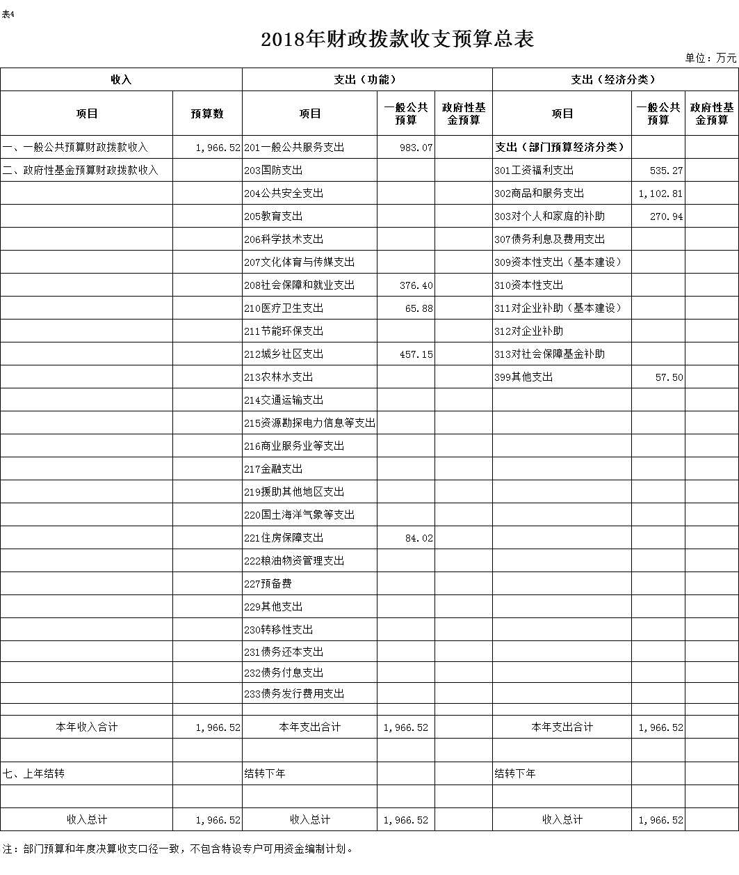 表4.2018年财政拨款收支预算总表