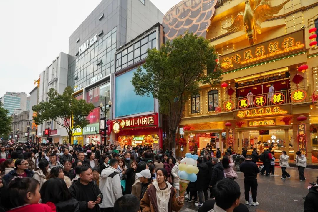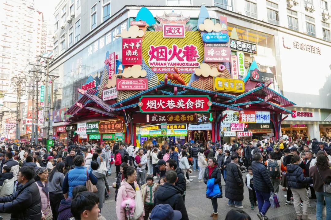 春节期间,江汉路步行街作为“武汉顶流”,接待游客116万人,同比增长48%。