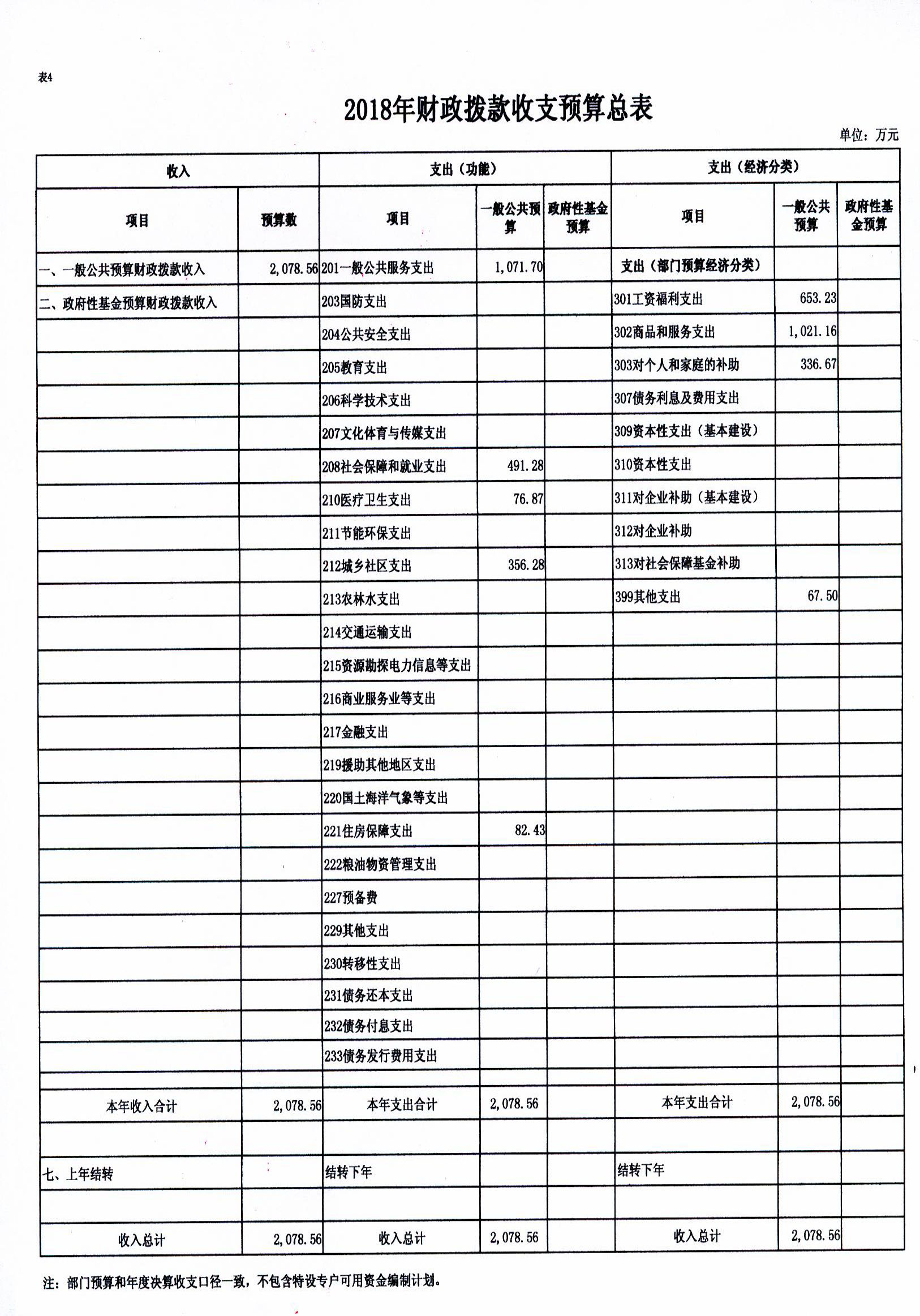2018年部门预算总收入2078.56万元,较2017年年初预算增加158.21万元,增长7.6%。其中:一般公共预算财政拨款(补助)收入2078.56万元,其他收入0万元,上年结转17.67万元。