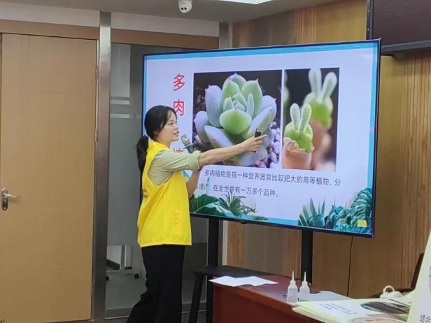 在见面会上,社工首先向大家详细介绍了自然科普园的设计方案,展示了效果图,并公开征求大家的建议和意见,最后对设计方案进行了投票同意。这个环节不仅让大家对自然科普园有了更深入的了解,同时也激发了大家参与项目建设的热情。随后,活动进入了多肉科普及种植环节。社工们带领大家学习了多肉的种植知识,并亲手种植了多肉植物。在社工的指导下,大家纷纷挑选自己喜欢的多肉植物,认真学习并掌握种植技巧。
