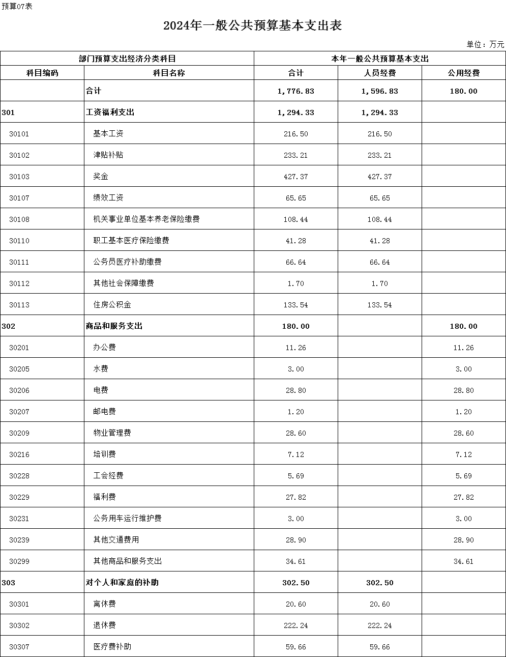 2024年一般公共预算基本支出1776.83万元,按部门预算支出经济分类包括: