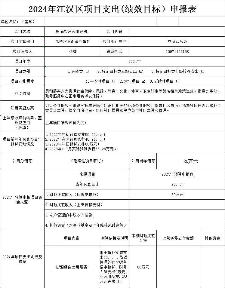6.街道自主保障经费80万元,主要用于经区财政局审批后的临时、突发事项或弥补街道经费不足。