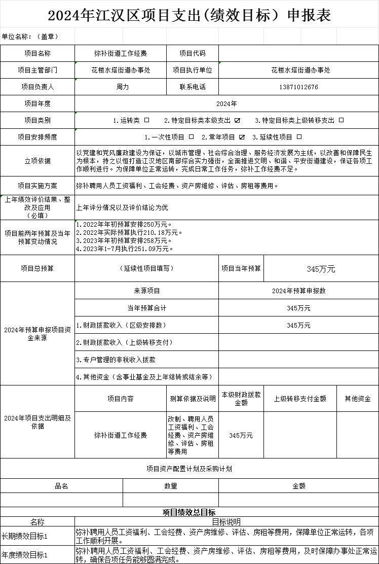8.弥补街道工作经费345万元,主要用于改制、聘用人员工资福利、工会经费、资产房维修、评估、房租等。