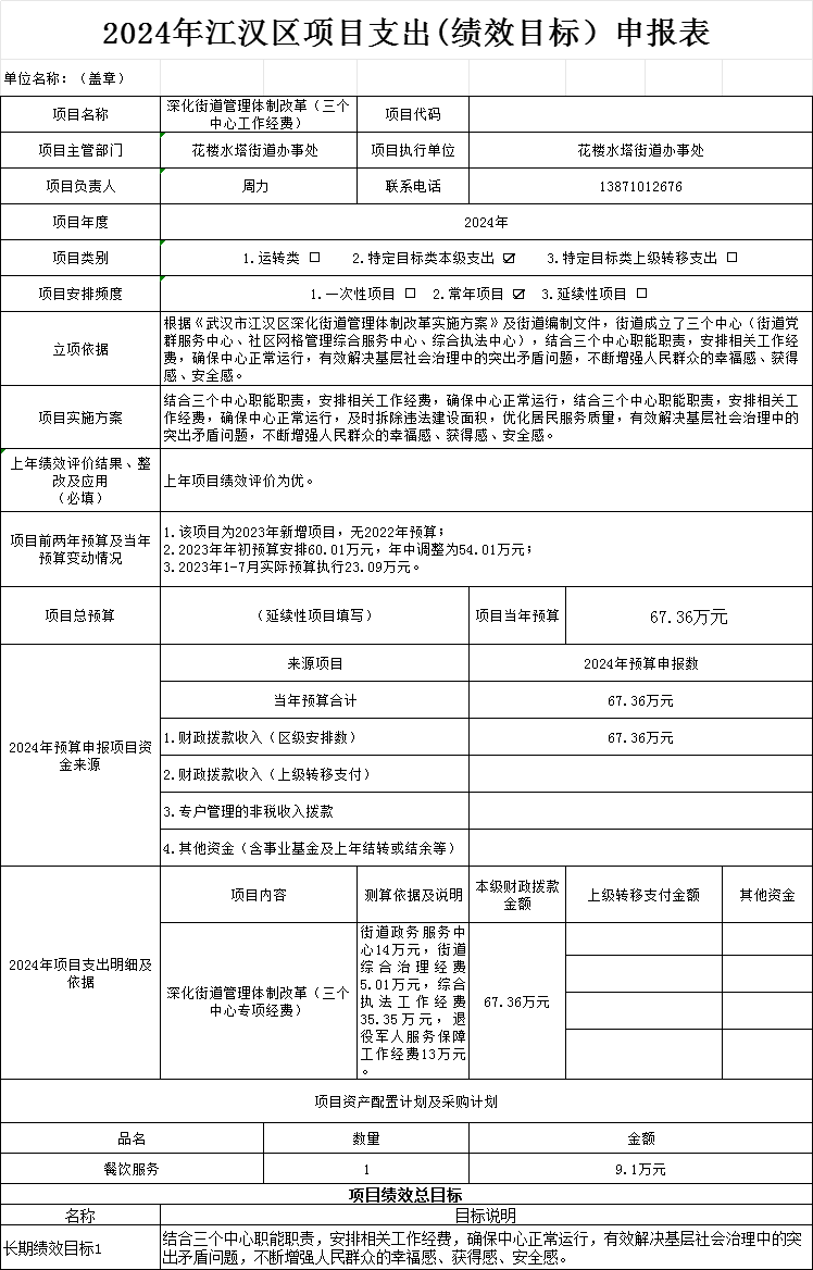 2.深化街道管理体制改革(三个中心工作经费)67.36万元,主要用于街道政务服务中心工作经费、街道综合治理经费、综合执法工作经费、退役军人服务保障工作。