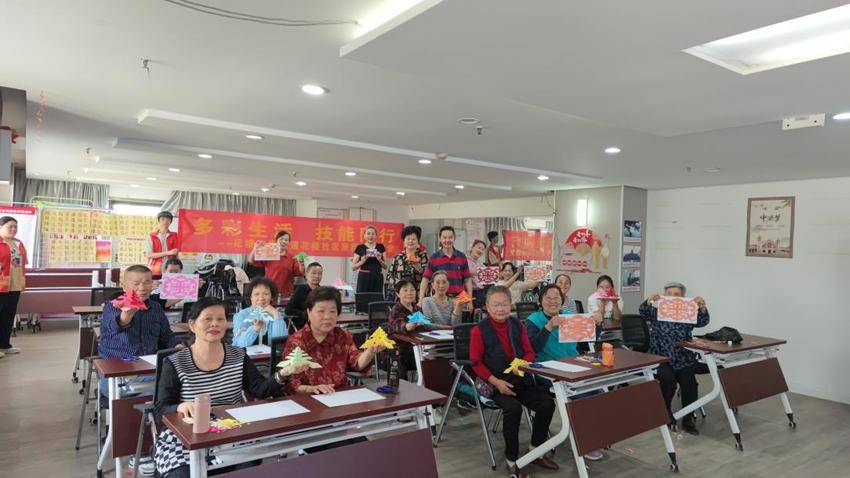 活动伊始,非遗剪纸传承人沈松柏老师向居民们介绍了剪纸的历史与文化背景,展示了精美的剪纸作品,让居民们对这一传统艺术有了进一步了解。现场教学中,他手把手指导居民们如何折纸、剪纸。大部分居民虽然初次接触剪纸,但是在老师耐心细致的指导和居民的不断摸索与实践中,一张张红纸在他们手中有节奏地舞动着,不一会儿,活灵活现的立体春和福寿桃作品就诞生了,现场欢声笑语此起彼伏。