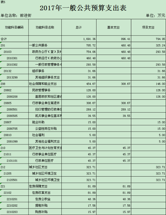 | 标 题 | 2017年前进街部门预算(及三公经费)公开文字说明及表格 | ||