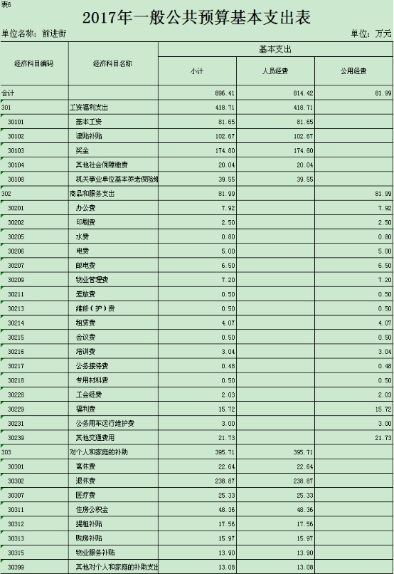 2017年前进街部门预算(及三公经费)公开文字说明及表格