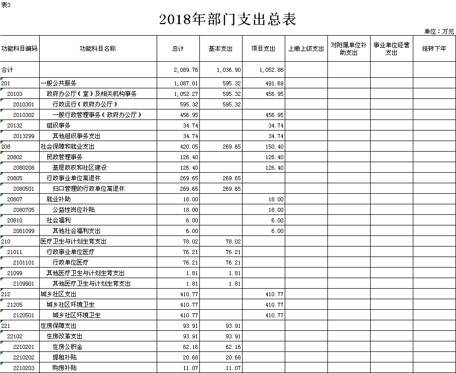 2018年一般公共预算财政拨款(补助)预算数2089.76万元,安排情况如下: