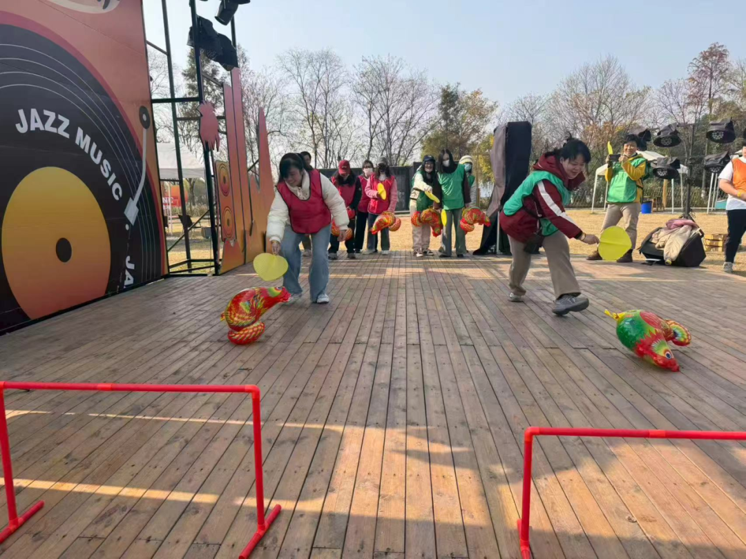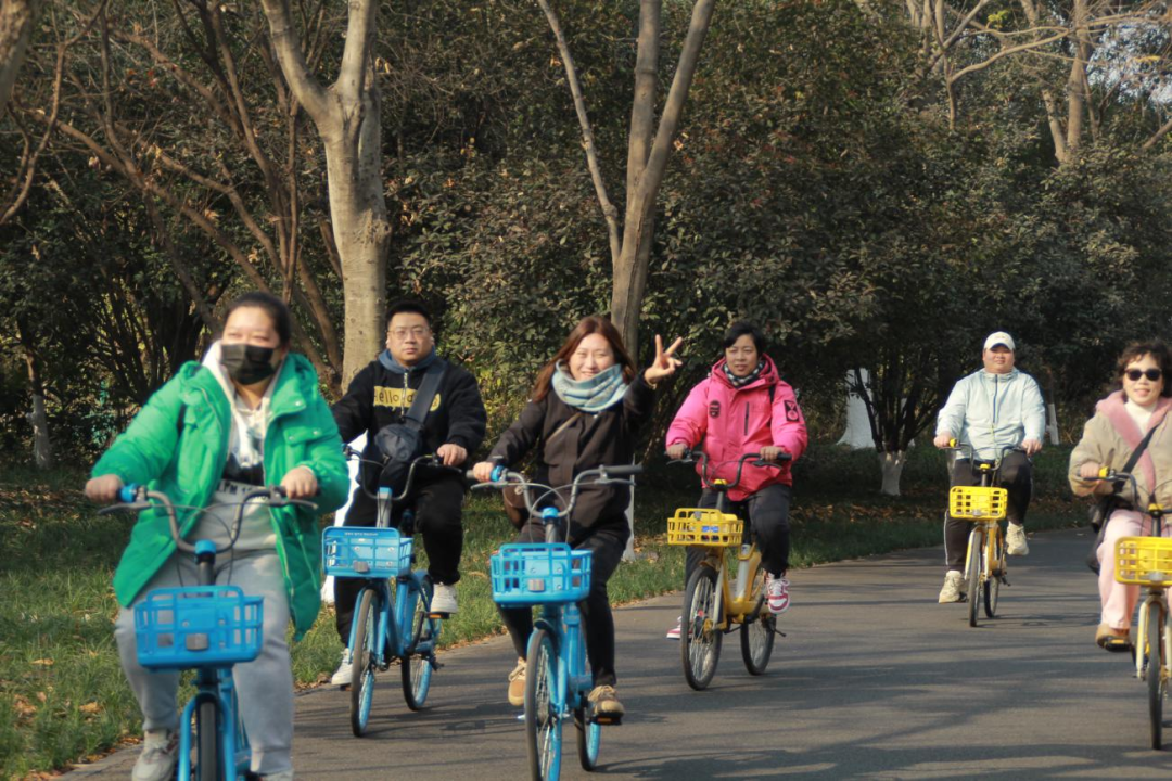 活动当天,居民们统一从文化站出发,沿东湖绿道悠然骑行,途中不时驻足赏景、合影留念,用镜头与脚步记录自然之美。骑行环节结束后,“一圈到底”“赶鸡入笼”等趣味运动项目接连展开。居民们组队协作、默契配合,在轻松愉快的氛围中拉近了彼此距离。午间,大家围坐交流,分享运动感受与生活点滴,温馨氛围贯穿始终。