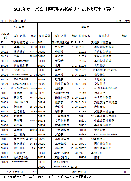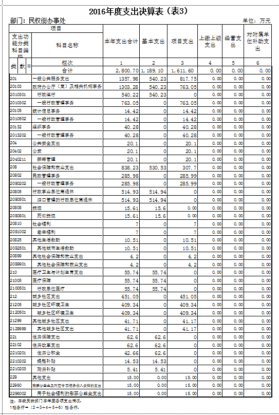 民权街2016年度部门决算情况说明