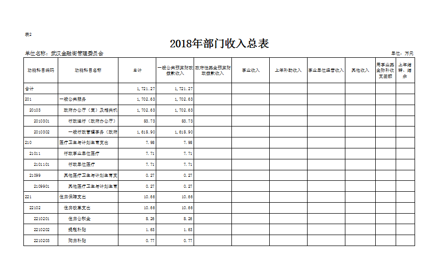 表2.2018年部门收入总表
