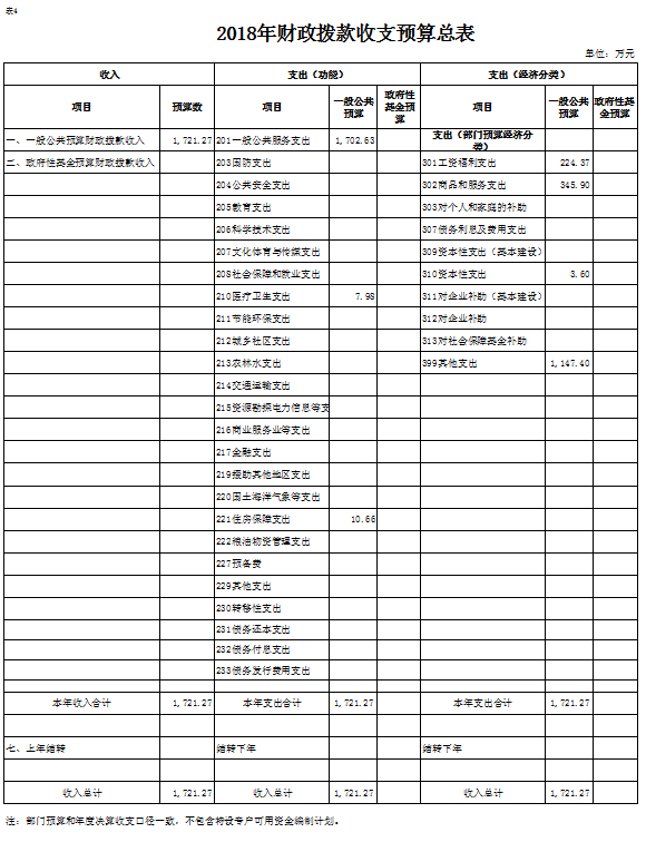 表4.2018年财政拨款收支预算总表