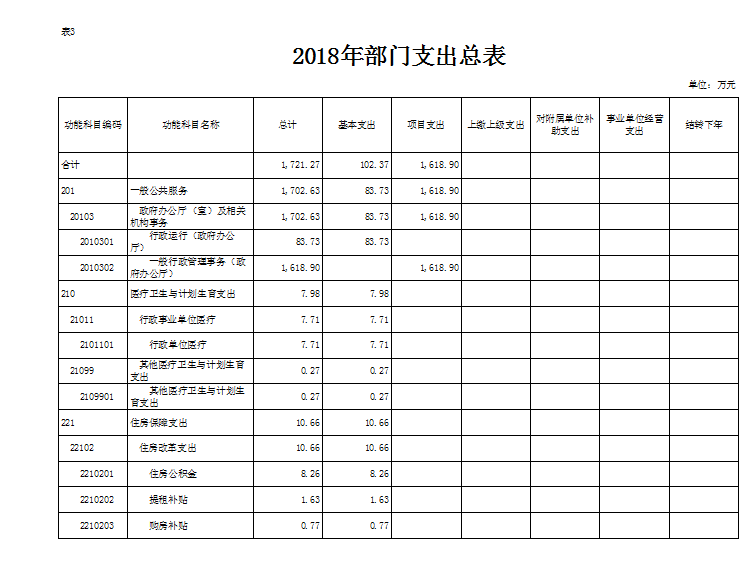 表3.2018年部门支出总表