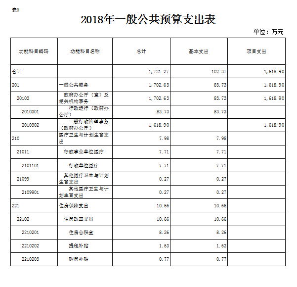 表5.2018年一般公共预算支出表