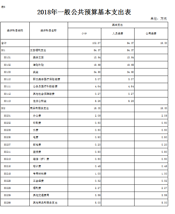 表6.2018年一般公共预算基本支出表