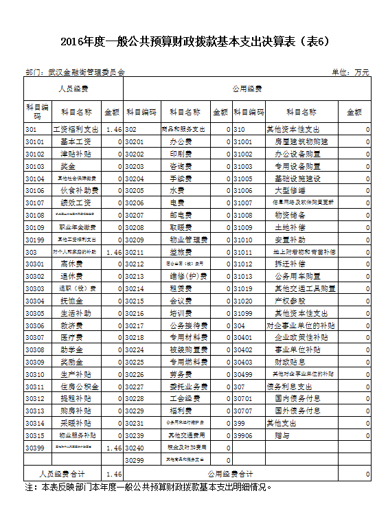 第三部分、武汉金融街管理委员会2016年度部门决算表
