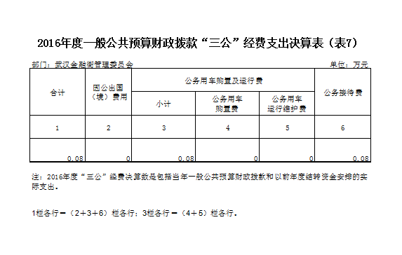 2016年度"三公"经费财政拨款年度预算为2.5万元,支出决算为0.08万元,完成预算的3.2%。其中: