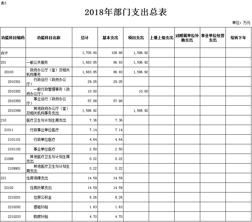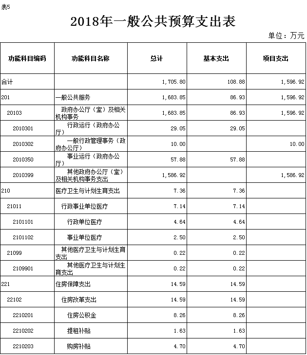 一般公共服务支出1683.85万元;医疗卫生支出7.36万元;住房保障支出14.59万元。