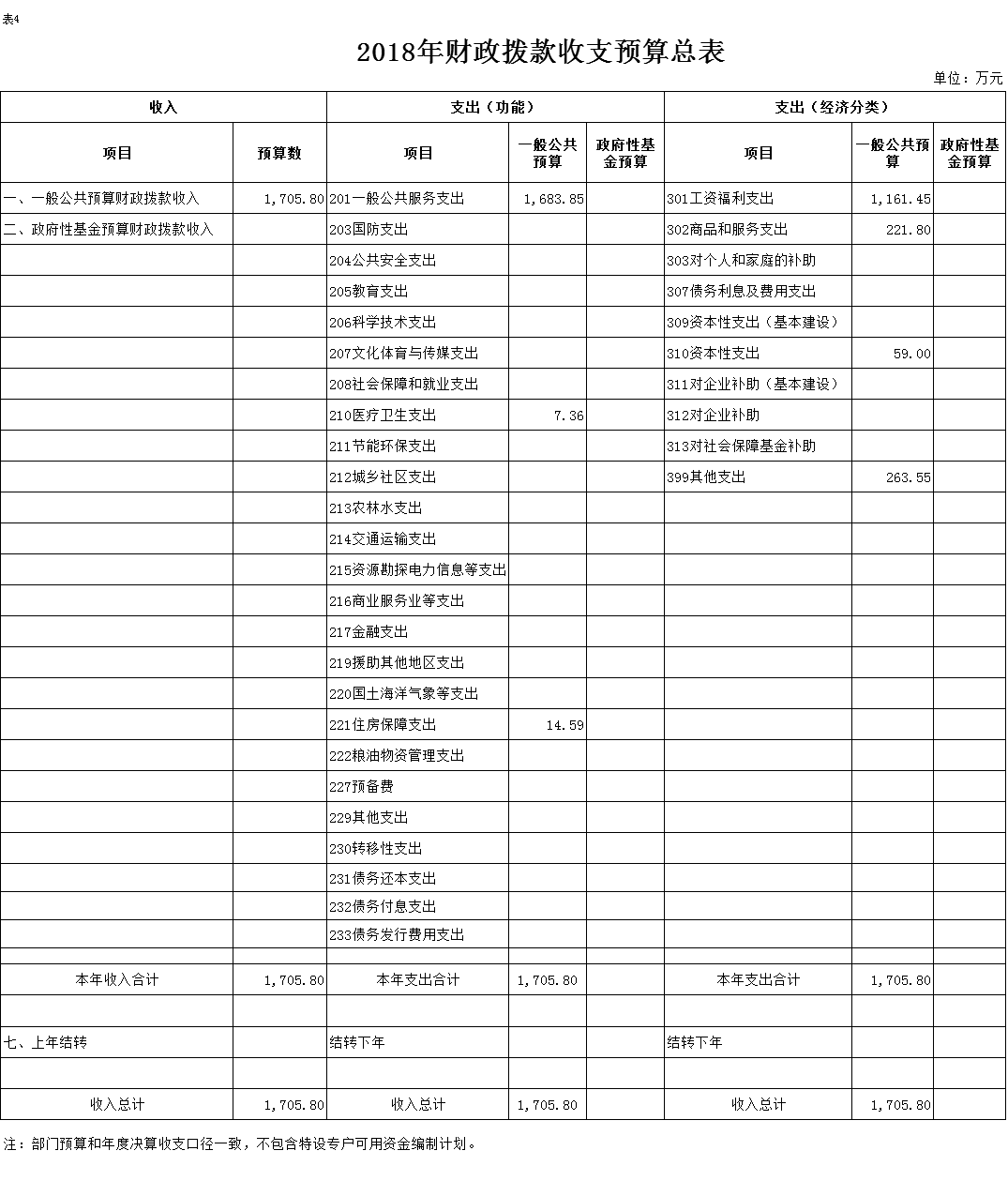 2018年一般公共预算财政拨款(补助)预算数1705.80万元,安排情况如下:
