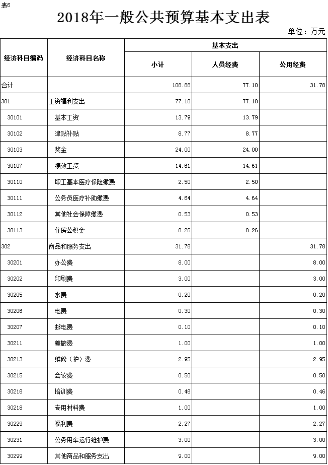 (一)基本支出108.88万元,较2017年年初预算减少34.17万元,减少23.89%,主要原因是:减少了对个人和家庭的补助费用。主要用于: