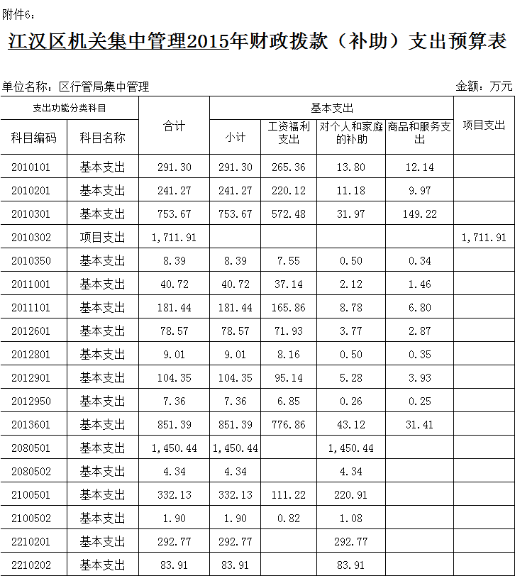 酒店偷拍 机关集中管理2015年财政拨款(补助)支出预算表