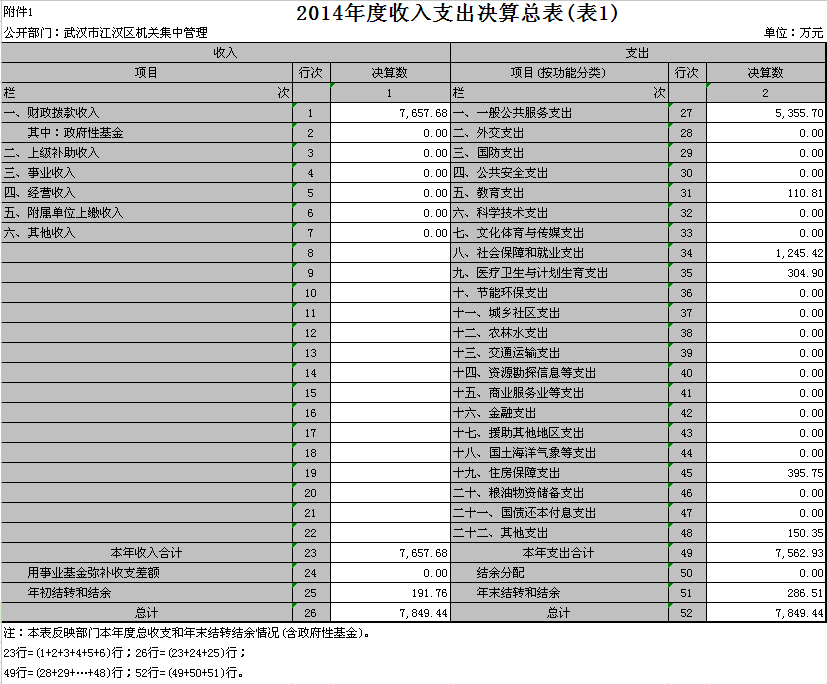 一、2014年度收入支出决算总表(表1)