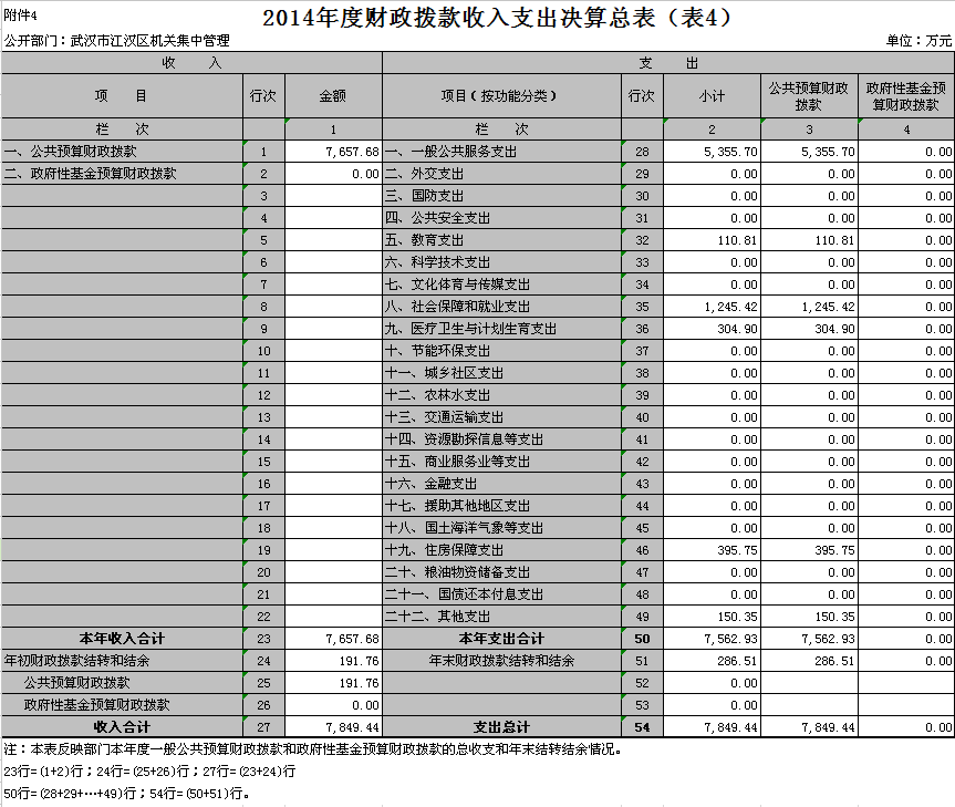 四、2014年度财政拨款收入支出决算总表(表4)
