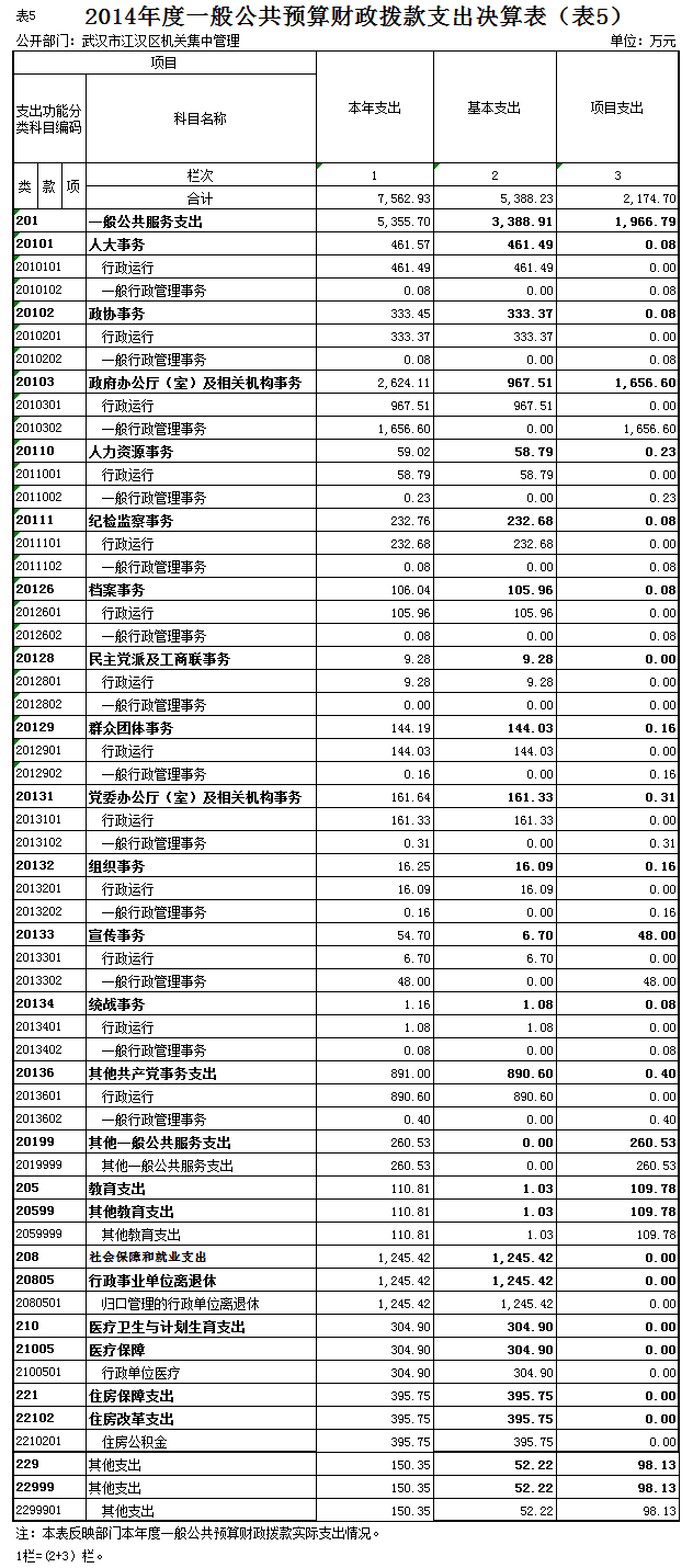 五、2014年度一般公共预算财政拨款支出决算表(表5)