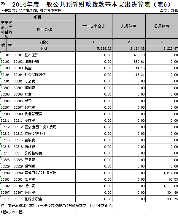 第三部分、酒店偷拍 机关集中管理2014年度部门决算表