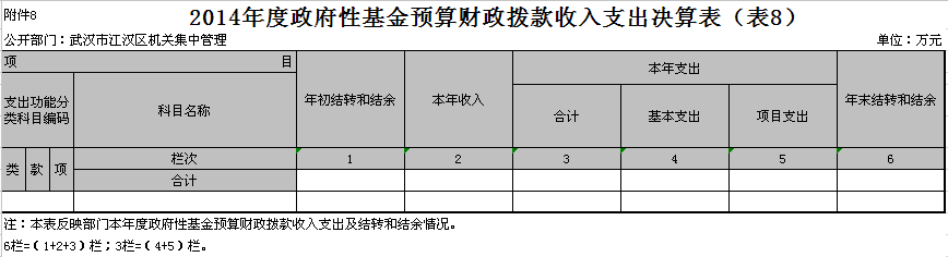 八、2014年度政府性基金预算财政拨款收入支出决算表(表8)