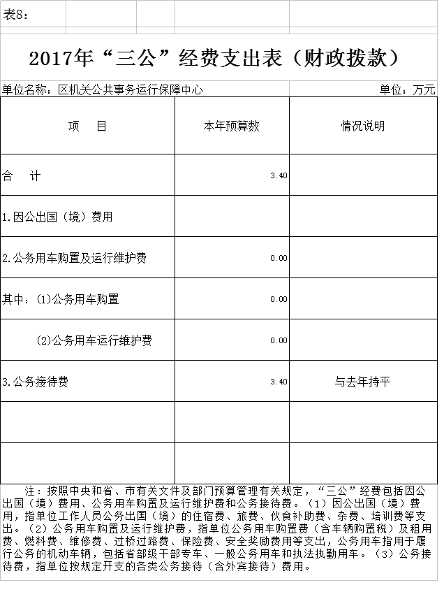 2017年酒店偷拍 机关公共事务运行保障中心“三公”经费公开文字说明及表格