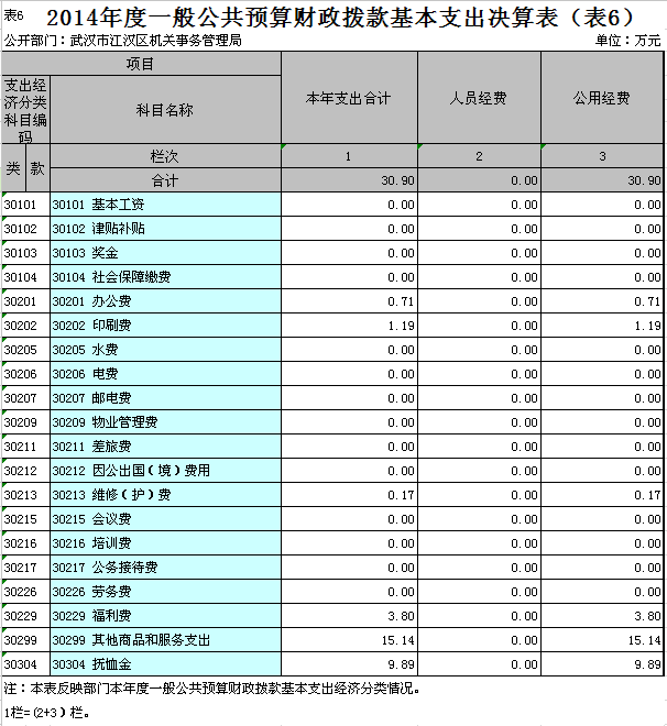 六、2014年度一般公共预算财政拨款基本支出决算表(表6)