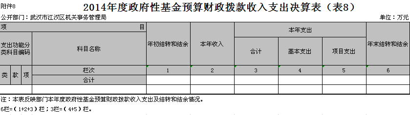 八、2014年度政府性基金预算财政拨款收入支出决算表(表8)