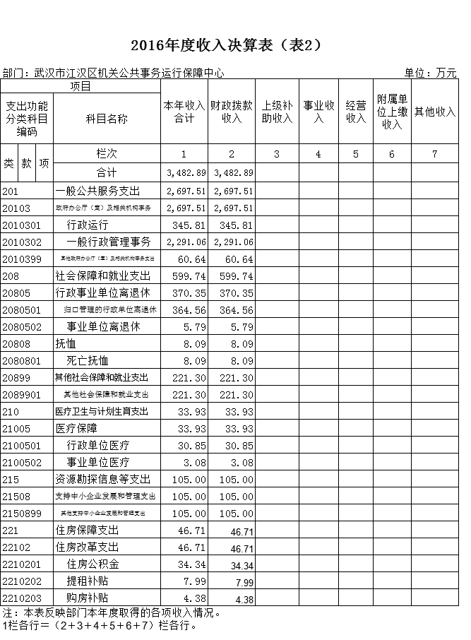 2016年度本年收入合计3482.89万元。其中:财政拨款收入(含政府性基金拨款)3482.89万元,占本年收入100%