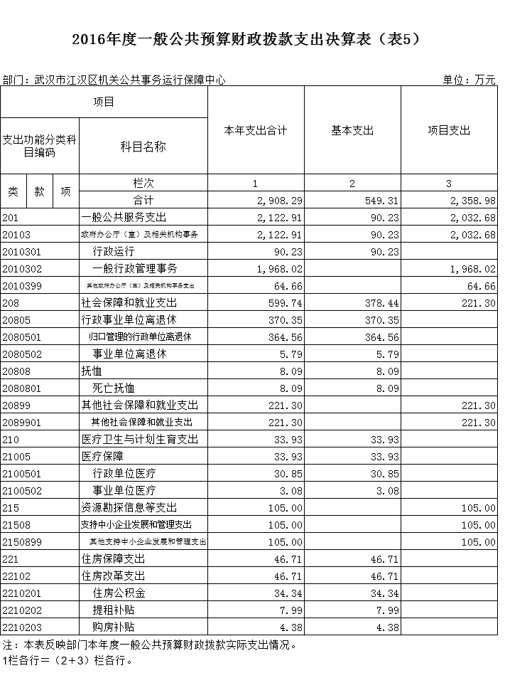 机关公共事务运行保障中心2016年度部门决算情况说明