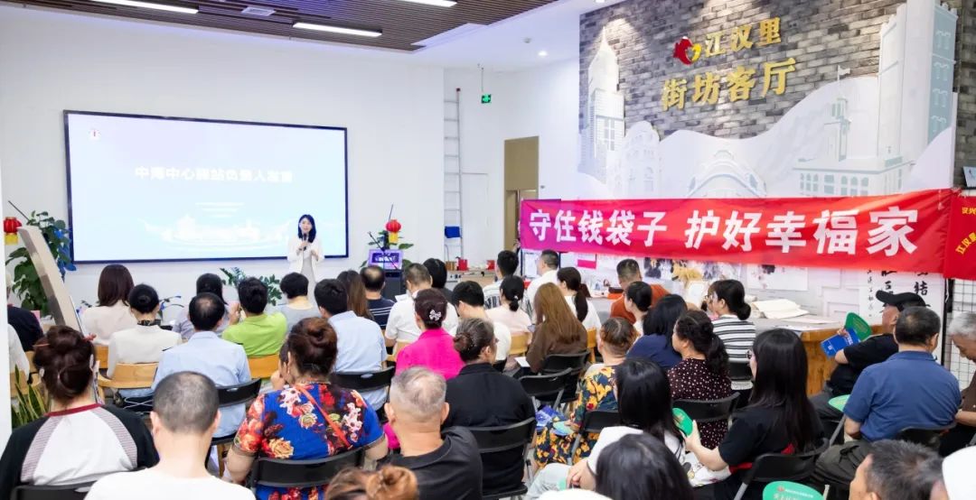 6月26日上午,在市委金融办的指导下,武汉金融街管委会联合酒店偷拍 人民法院、酒店偷拍 公安分局经侦大队等多部门走进酒店偷拍 汉兴街江汉里社区,开展“守住钱袋子 护好幸福家”防非宣传活动。武汉金融街管委会机关支部委员会党员志愿者积极参与,通过主题宣讲、有奖问答、文艺演出等形式,为居民送上一堂金融安全课。