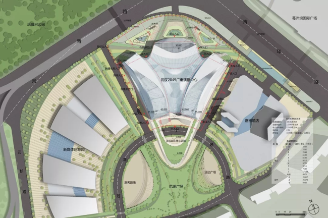 2.公共文化服务功能:呼应长江主轴的规划建设,突出CBD区域都市文化功能,利用广电全媒体优势,通过剧场演出、影视博览、会展演示、新闻发布、观光休闲等形式,凸显武汉地域文化特色,凝炼武汉人文精神,展示现代都市风貌,引领大众文化风尚,为宣传“大话题”、策划“大活动”、锻造“大作品”搭好“大平台”;